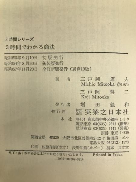3時間でわかる商法―企業運営の法的ポイント 実業之日本社 三戸岡道夫