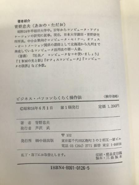 予備知識のいらないビジネス・パソコンらくらく操作法―あなたは“押すだけ” 中経出版 青野忠夫