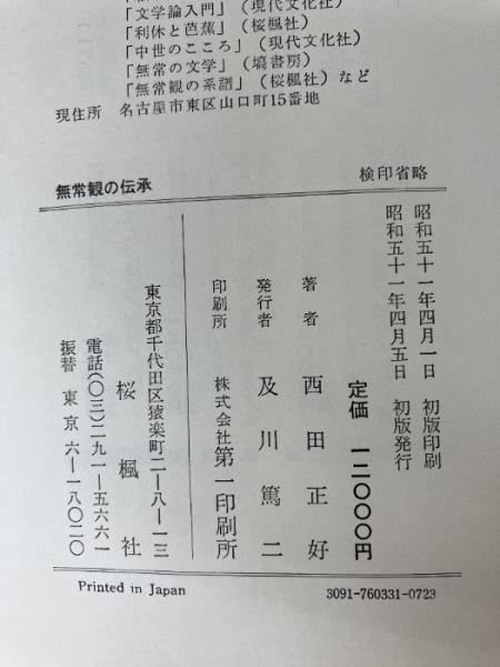 無常観の伝承〈近世・近代編〉―日本仏教文芸思想史 (1976年) 桜楓社 西田 正好