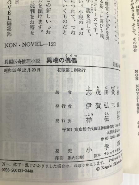 異端の傀儡: 長編伝奇推理小説 (ノン・ノベル 121) 祥伝社 志茂田 景樹