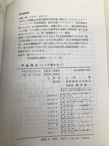 年金改正ここが変わる 税務研究会 土屋 彰