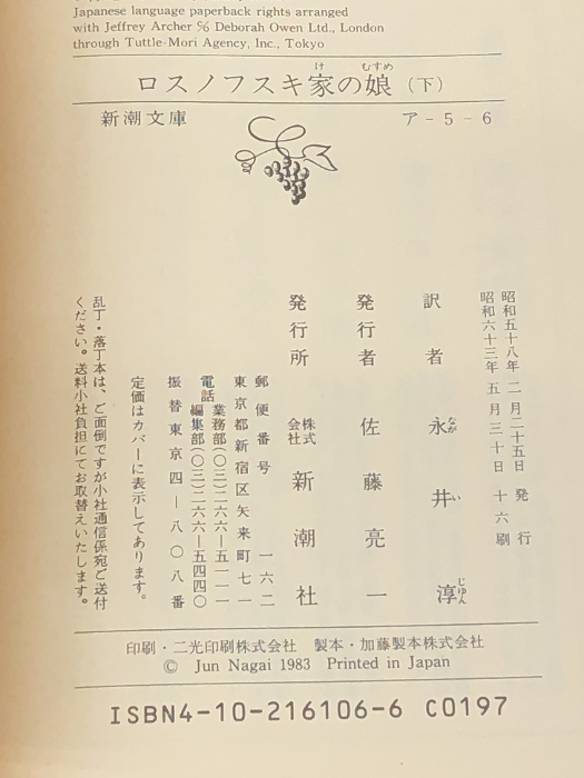 ロスノフスキ家の娘 上下巻セット (新潮文庫)