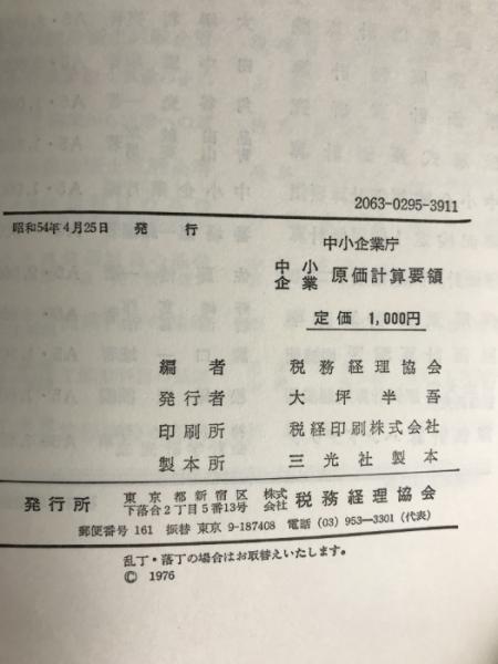 中小企業原価計算要領 (1975年) 税務経理協会 中小企業庁