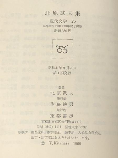 現代文学〈第25〉北原武夫集 (1966年) 東都書房
