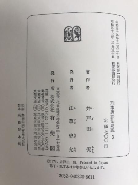 刑事訴訟法要説〈3〉 (1974年) 有斐閣 井戸田 侃