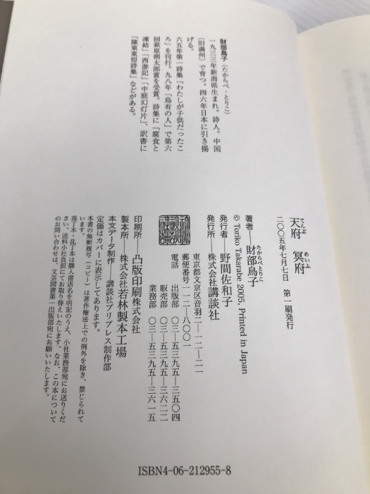 天府冥府 【※難あり】講談社 財部 鳥子