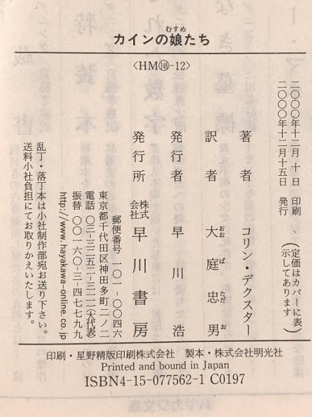 カインの娘たち (ハヤカワ・ミステリ文庫 テ 4-12) 早川書房 コリン デクスター