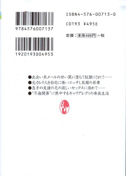 • 解説 2000年12月10日発行/初版●成人小説(グラビアなし)●※古い文庫ですので多少の経年劣化はご理解くださいませ。※この商品は成人向け商品です。18歳以上の方のみご購入できます。※掲載品、通販商品は全て店頭・他サイト販売と併用です。売り切れの際はキャンセル処理とさせていただきますので、御了承ください。