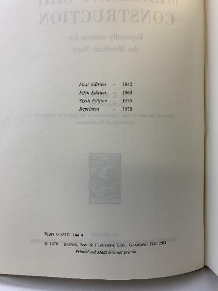 Merchant Ship Construction Especially Written for The Merchant Navy By H.J.PURSEY WATERTIGHT BULKHEAD 1978