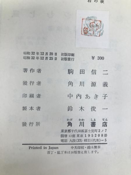 石の夜 (1957年) 角川書店 駒田 信二