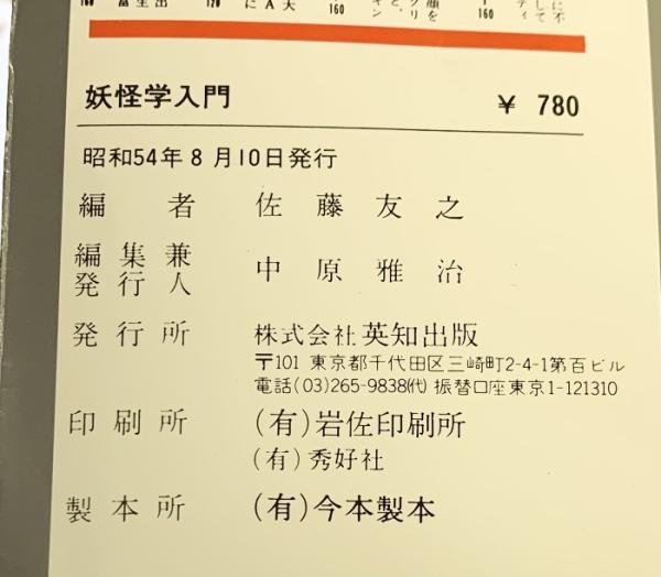 『妖怪学入門』東西お化け大カタログ オカルトに関する12章 英知出版 佐藤友之編 昭和54年