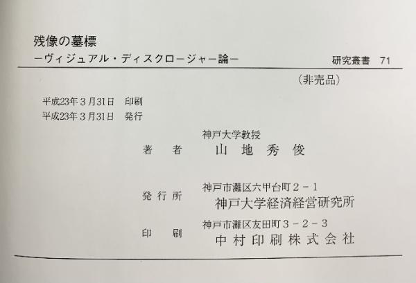 残像の墓標 神戸大学経済経営研究所(研究叢書71)ヴィジュアル・ディスクロージャー論 山地秀俊 平成23年【非売品】