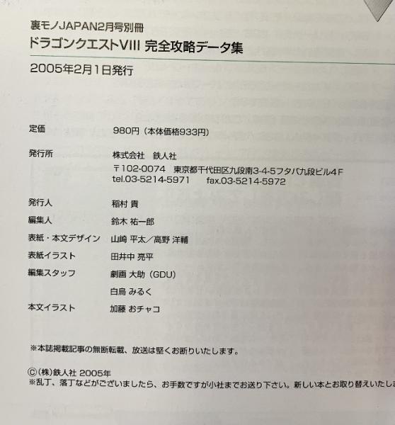 ドラゴンクエスト(8)完全攻略データー集 鉄人社 裏モノJAPAN2月号別冊 2005年2月1日発行