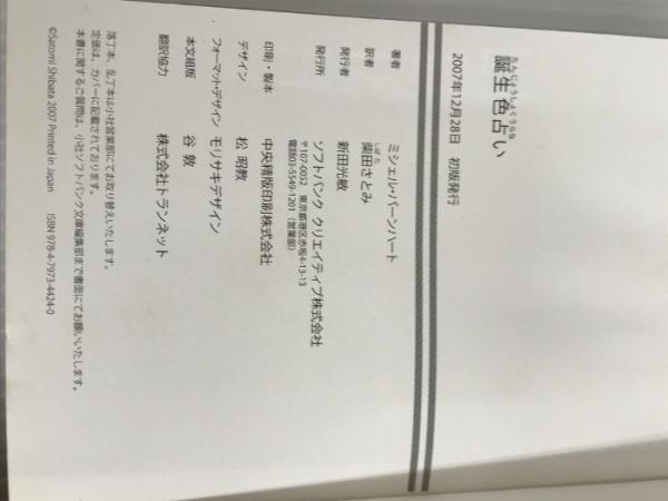 ※イタミ有。誕生色占い (ソフトバンク文庫 ハ 3-1) ソフトバンククリエイティブ ミシェル・バーンハート