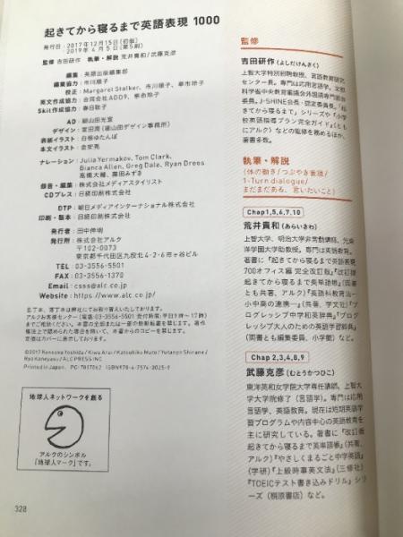 【※CD欠品】起きてから寝るまで英語表現1000 アルク 荒井 貴和