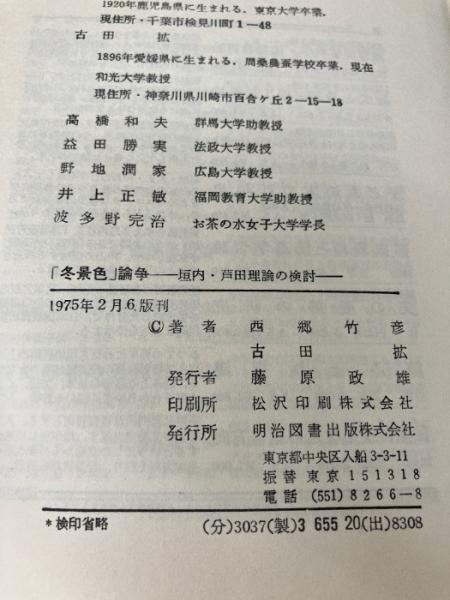 「冬景色」論争―垣内・芦田理論の検討 (1970年) 明治図書出版 西郷 竹彦