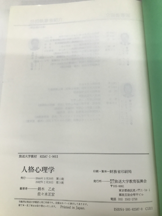 人格心理学 改訂版【※カバー無し】 放送大学教育振興会