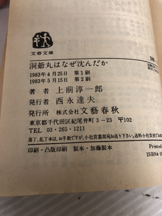 洞爺丸はなぜ沈んだか (文春文庫 248-4) 文藝春秋 上前 淳一郎