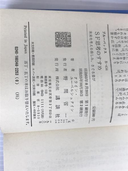 ※イタミ有。SF思考のすすめ: 未来を考える楽しみ、さぐる喜び (ブルーバックス 434) 講談社 クライン ユーベルシュタイン