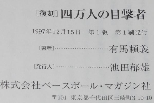 • 解説 有馬頼義 [復刻] 四万人の目撃者 ベースボール・マガジン社 1997年12月第1刷 B6判.