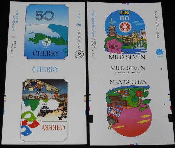 【印刷見本たばこパッケージ】川崎市制50周年 60周年記念 1974/1984 2種セット
