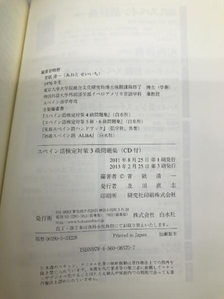スペイン語検定対策3級問題集【※CD欠品】【※カバー無し】 白水社 青砥 清一