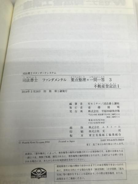 司法書士 ファンダメンタル 要点整理+一問一答 (3) 不動産登記法(1) 【※カバー無し】 早稲田経営出版 Wセミナー/司法書士講座