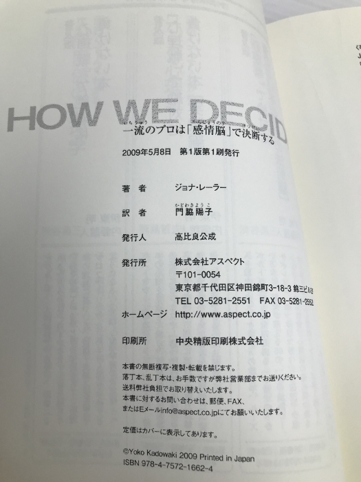 一流のプロは「感情脳」で決断する アスペクト ジョナ・レーラー