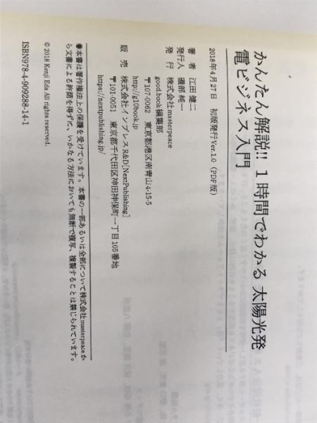 ※カバー無し。かんたん解説!! 1時間でわかる 太陽光発電ビジネス入門 good.book 江田 健二