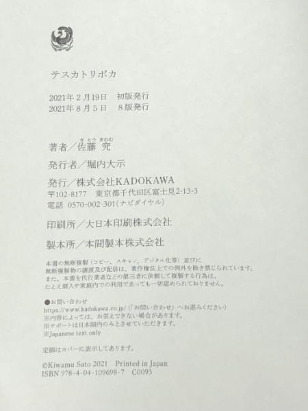 テスカトリポカ KADOKAWA 佐藤 究 ※カバー無し