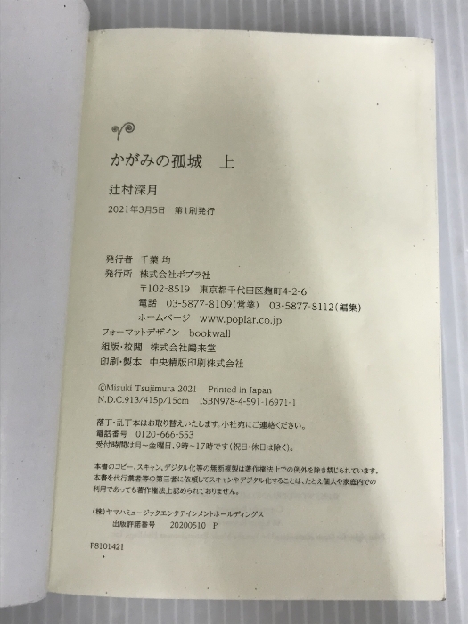 ※イタミ有。かがみの孤城 上 (ポプラ文庫 つ 1-1) ポプラ社 辻村 深月
