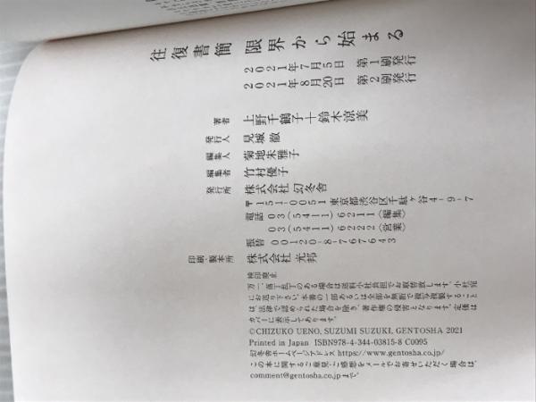 ※イタミ有。往復書簡 限界から始まる 幻冬舎 上野 千鶴子