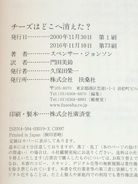 チーズはどこへ消えた?  扶桑社 スペンサー ジョンソン ※イタミ有