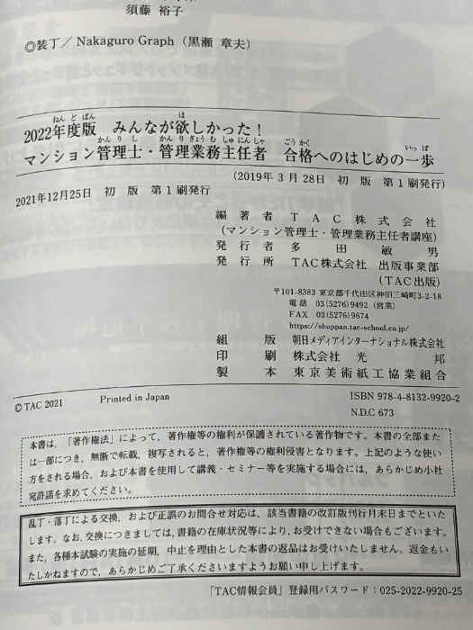 みんなが欲しかった! マンション管理士・管理業務主任者 合格へのはじめの一歩 2022年度 ※カバー無し