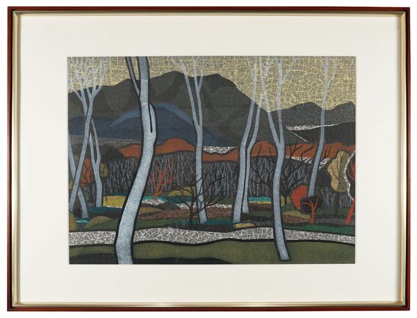 • 解説 木版 40.5x56cm(イメージサイズ) / 56.5x74.5cm(額サイズ)A.P.額装(箱欠) 1面Frame without box 少シミ 裏面テープ跡