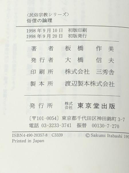俗信の論理 (民俗宗教シリーズ) 東京堂出版 板橋 作美 ※カバー無し※イタミ有