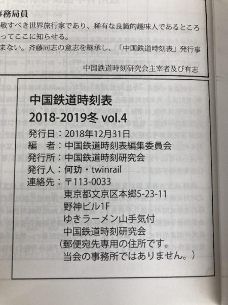 中国鉄道時刻表 2018-2019冬 vol.4 密林社 中国鉄道時刻研究会