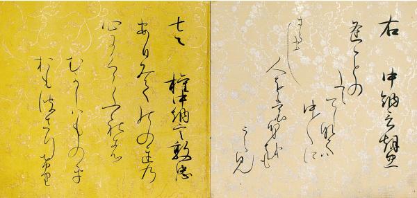 • 解説 江戸中期写 縦16.7糎、横17.5糎 外題「六ゝ歌仙」 雲母摺色替料紙 蔵印(「吉澤聚湊」)  表紙擦レ