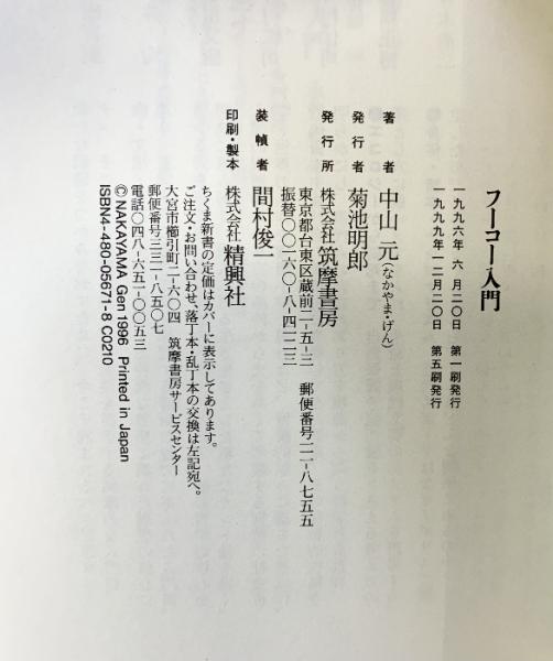 フ-コ-入門 (ちくま新書 71) 筑摩書房 中山 元