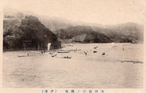 • 解説 N26011653〇戦前絵葉書○愛媛県 大洲肱川の帰帆(伊予) 古写真○和本古書古文書