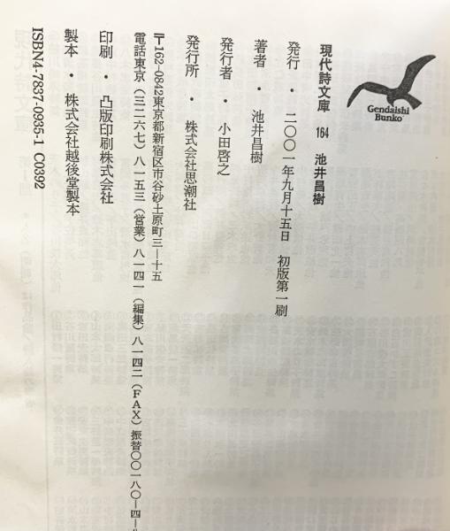 池井昌樹詩集 (現代詩文庫 第 164) 思潮社 池井 昌樹