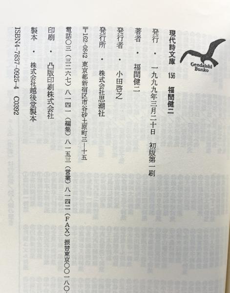 福間健二詩集(現代詩文庫156) (現代詩文庫 第 1期156) 思潮社 福間健二