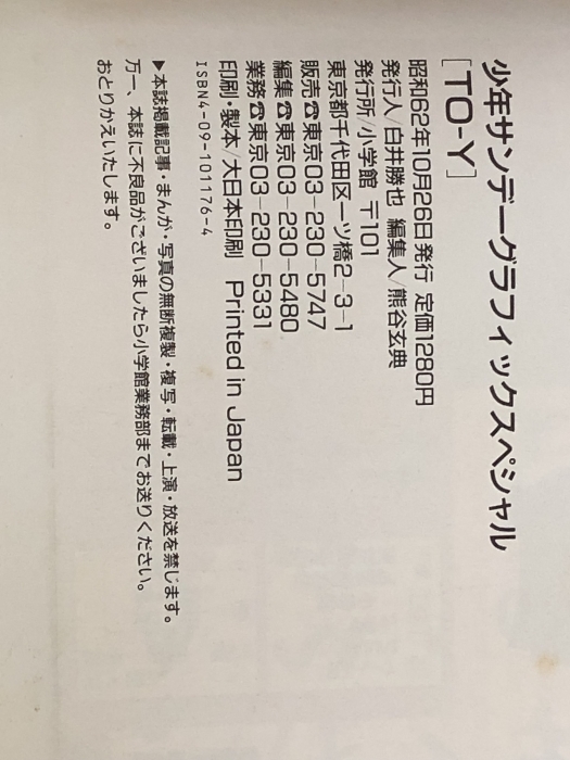 Toーy (少年サンデーグラフィック) 小学館 上條淳士※難あり