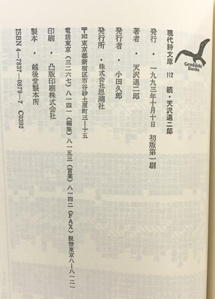 続・天沢退二郎詩集 (現代詩文庫) 思潮社 天沢退二郎