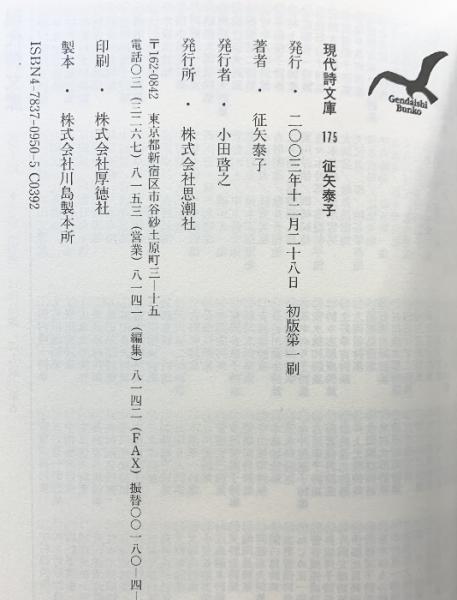 征矢泰子詩集 (現代詩文庫 第 1期175) 思潮社 征矢 泰子