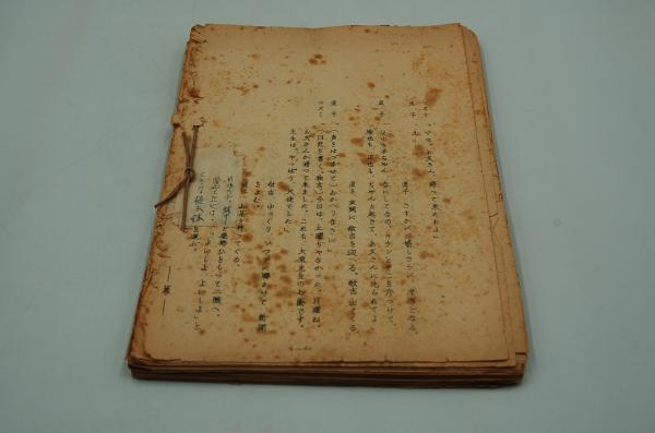 • 解説 中野実旧蔵台本(活字の大きさなどの指示入りの、わら半紙を紐で綴じた仮台本で、本文にはほとんど修正指示等はなし)