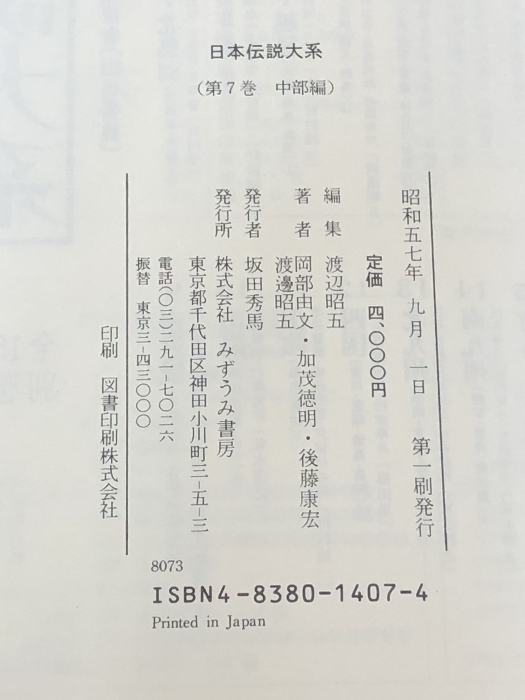 日本伝説大系 (第7巻) 中部編―長野・静岡・愛知・岐阜 みずうみ書房 岡部 由文