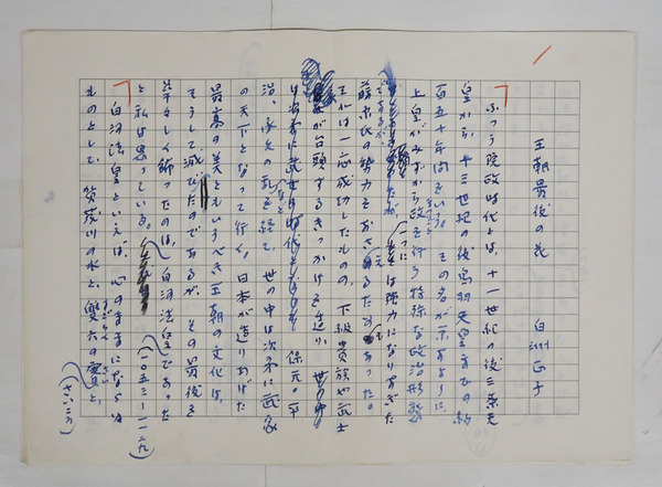 白洲正子草稿 『王朝最後の花』 ペン書四百字 詰14枚完 10枚目テープ補修有 12枚目番号ダブリ