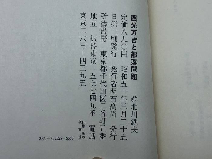 西光万吉と部落問題 (1975年) 北川鉄夫