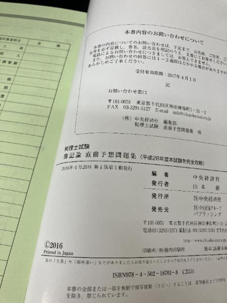【税理士試験】 簿記論直前予想問題集〈平成28年度本試験を完全攻略〉 (会計人コースBOOKS) 中央経済社